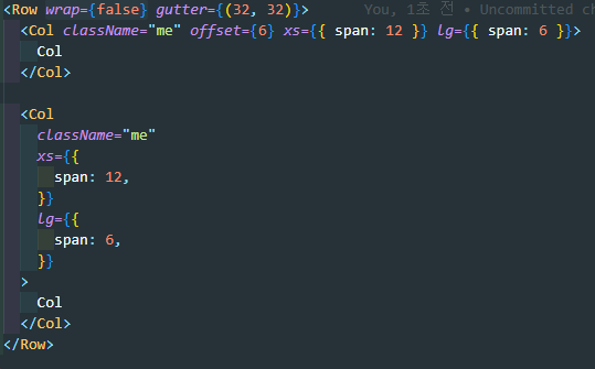 ex ) <Col span={8}/> : 너비가 같은 3개의 열