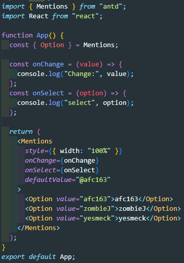 ant desighn에는 컴포넌트들을 가져올 때 그에 맞는 것들을 import해와야 하는데 mentrions는 mentions를 antd로부터 import해와야 한다.